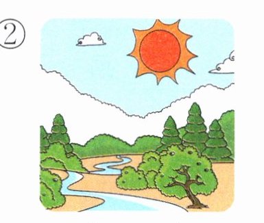 3. 下面哪一幅图片画的是“白云对红日”的景象呢?在正确答案的括号内画“√”。