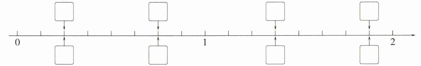 4. (数感)在数线上面的$□$里填分数,下面的$□$里填小数。