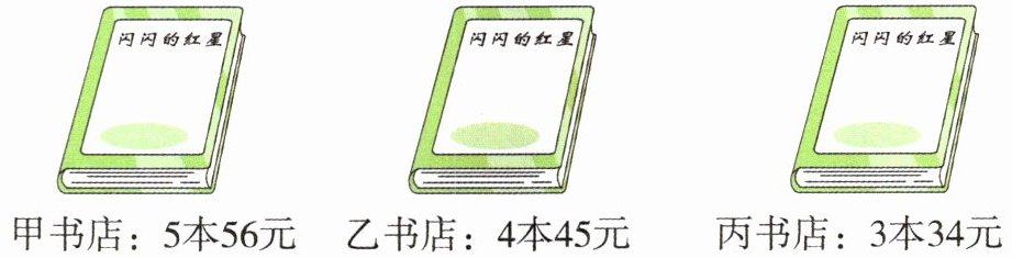 5. (说理表达)乐乐想买几本《闪闪的红星》送给朋友,有下面三个书店在售卖,请你帮乐乐算一算,在哪个书店买最便宜?(计算结果用带分数表示)