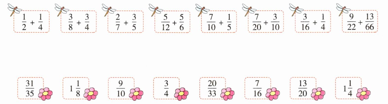 4. 蜻蜓会飞到哪一朵花上?连一连。