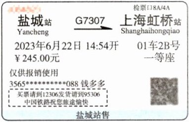 解:设这列高铁的二等座票价是 $ x $ 元。