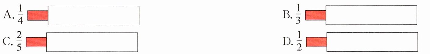 6. (简单推理)下面的长方形纸条被遮住了一部分,并且露出部分的长度相等,露出部分的长度占长方形纸条长度的几分之几如图所示,纸条( )最短。