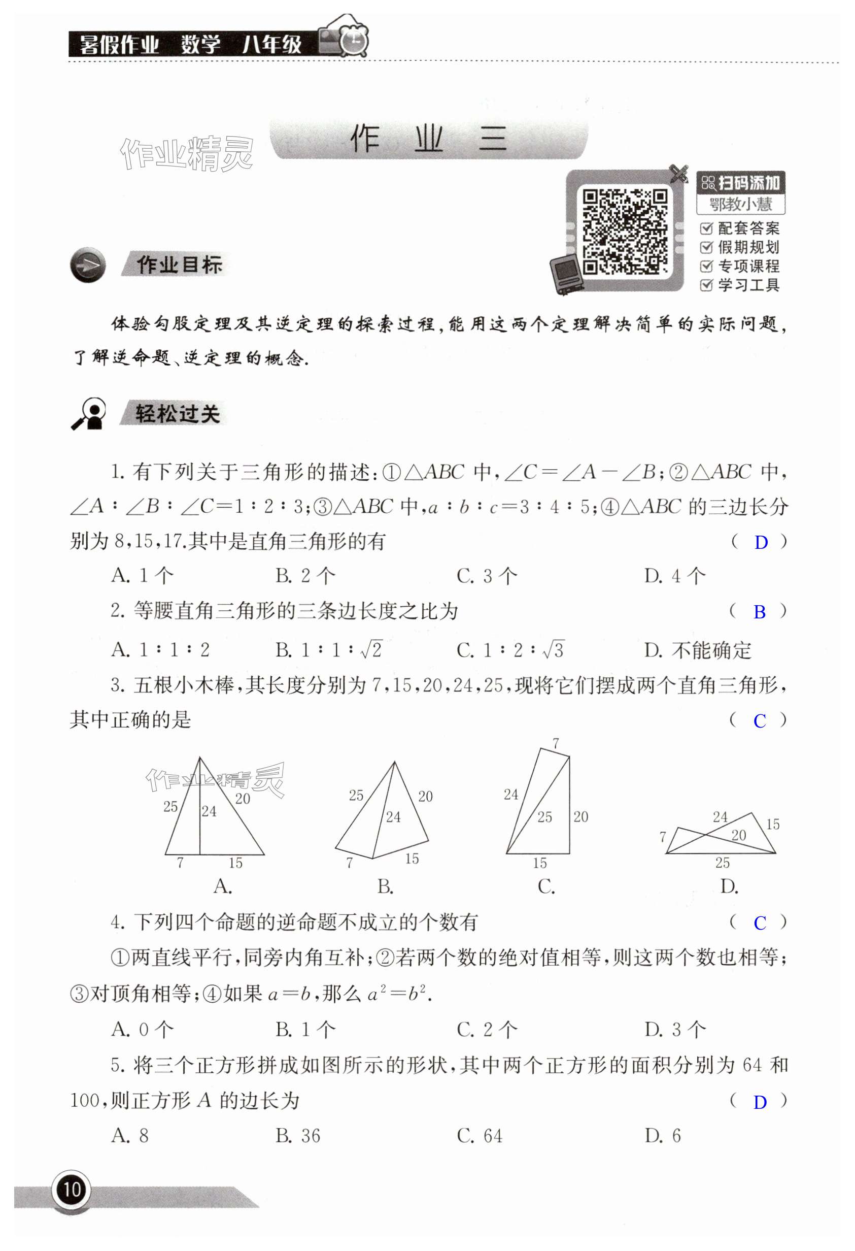 《2025年长江作业本暑假作业湖北教育出版社八年级数学》
