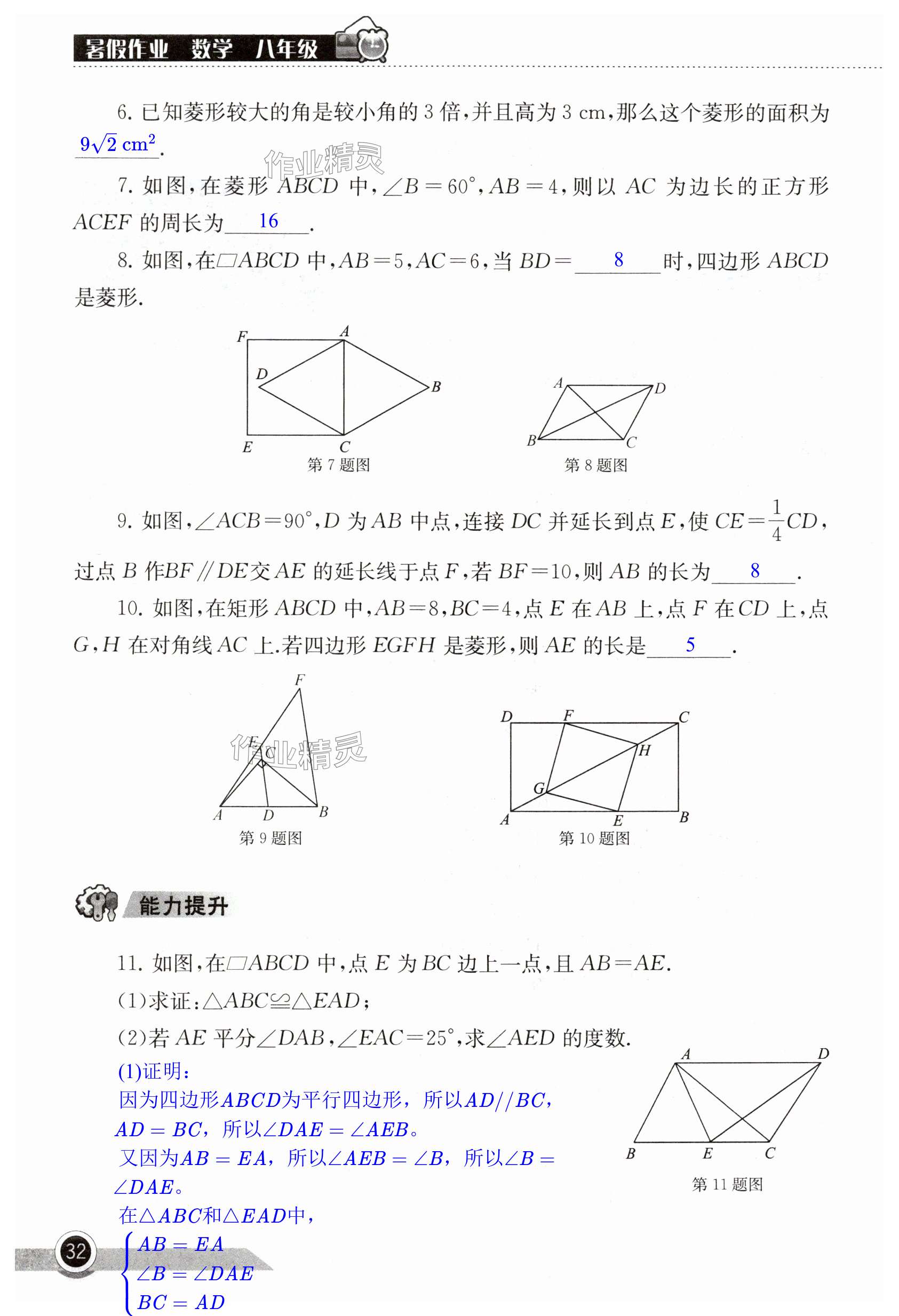 注:目前有些书本章节名称可能整理的还不是很完善,但都是按照顺序排列的,请同学们按照顺序仔细查找。练习册 2025年长江作业本暑假作业湖北教育出版社八年级数学 答案主要是用来给同学们做完题方便对答案用的,请勿直接抄袭。
