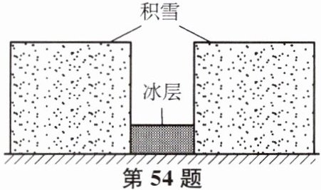 54. 在平整地面上有一层厚度均匀的积雪,小明用力向下踩,形成了一个下凹的脚印,如图所示.脚印下的雪由于受外力挤压可近似看成冰层,利用冰的密度,只要测量下列哪组物理量,就可以估测出积雪的密度( )