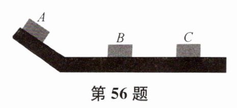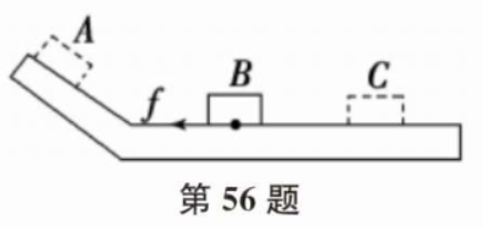 56. 如图所示,木块从斜面上A处由静止滑下,经水平木板表面上的B处,最终停在C处。画出木块在B处时水平方向的受力示意图。