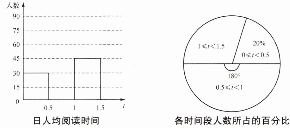 (3) 在扇形统计图中,计算出日人均阅读时间在 1—1.5 小时对应的圆心角度数;