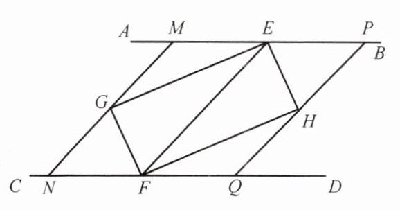 (2)小明在完成(1)的证明后继续进行了探索,过点G作MN//EF,分别交AB、CD于点M、N,过点H作PQ//EF,分别交AB、CD于点P、Q,得到四边形MNQP,此时,他猜想四边形MNQP是菱形,请在下列框中补全他的证明思路.