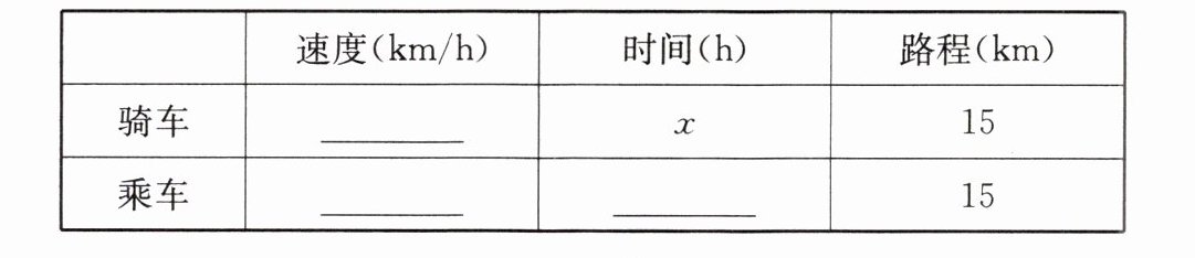 10. 某校八年级学生到距学校$15$km的医院体检,一部分学生骑车先行出发,$40$min后,另一部分学生乘坐公交车前往,汽车速度是自行车速度的$3$倍,结果两部分学生同时到达医院.
