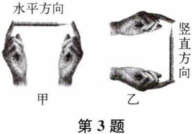 3. 探究“压力的作用效果与受力面积的关系”时,分别采用如图甲、乙所示的两种方法,用两只手的食指分别压在铅笔的两端。