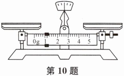 10. 调节天平平衡时,某同学将天平放在水平工作面上后,发现天平如图所示,则接下来的操作应是:首先______,然后______,直到指针尖对准分度标尺中央的刻度线。