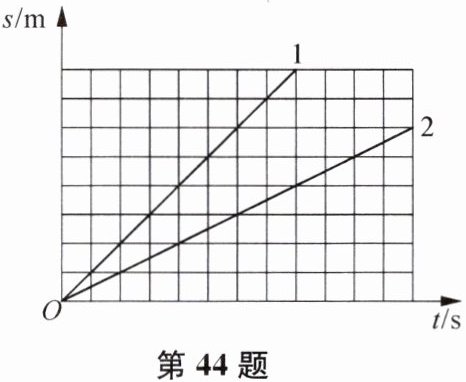 44. 用测力计两次拉动重为G的物体竖直向上运动,两次运动的s-t图像如图所示,其对应的测力计示数分别为$F_1、$$F_2($不计空气阻力),则$F_1$和$F_2$的大小关系是( )