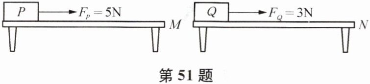51. 如下图所示,放在M、N两水平桌面上的P、Q两物体,分别在F_P= 5N、F_Q= 3N的水平拉力作用下做匀速直线运动,可以确定( )