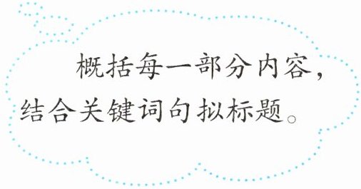 解析:根据题干右侧泡泡语的提示,通过抓住关键词句概括每一部分内容,再结合概括小标题的要求,即可得出答案。