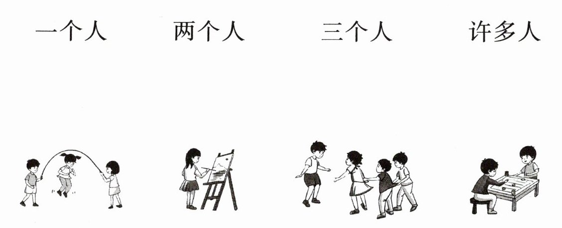 1. 一个人连画画;两个人连下棋;三个人连老鹰捉小鸡;许多人连跳绳