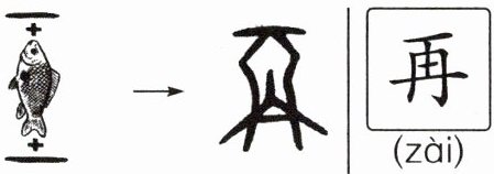 “再”的字形表示有第一次,就会有第二次。甲骨文的“再”,字形的中间有一条鱼,上下又各画上了一条横线,表示第二次的意思。现在,“再”常表示“更加”,如“再勇敢一点”。此外,这个字也可表示先后顺序,如“先写作业,再看电视”。