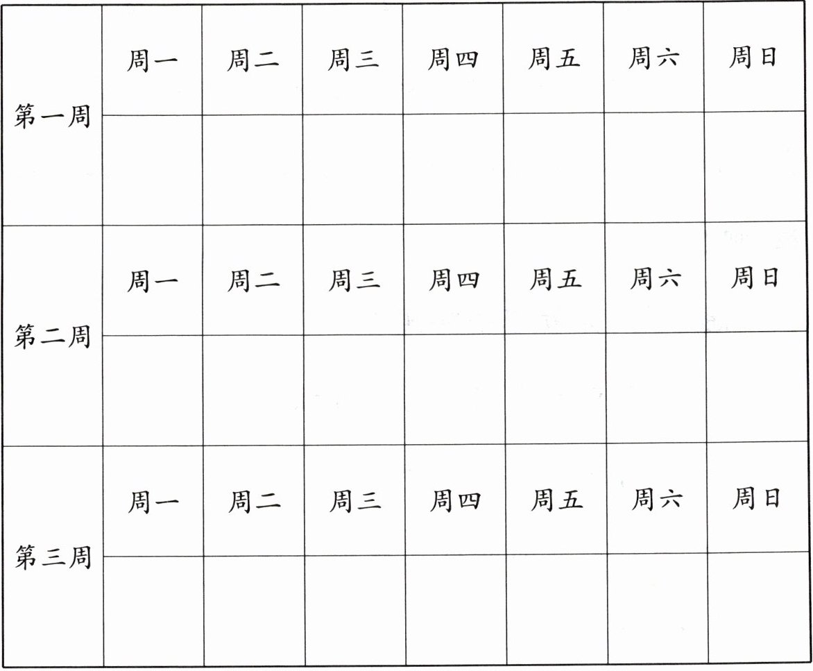爱劳动的好习惯需要我们坚持不懈的努力。请根据实际情况,用不同的表情记录下你的坚持吧!