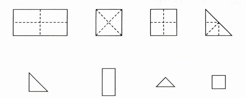 根据折痕想一想,下面的纸对折两次后是什么图形?用线连一连。