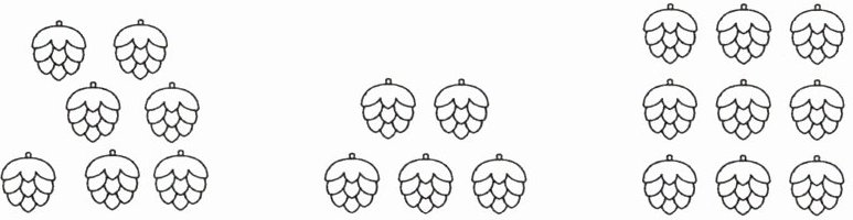 6. 小松鼠从下面的松果中拿走两堆。它最多拿走了()颗,最少拿走了()颗。