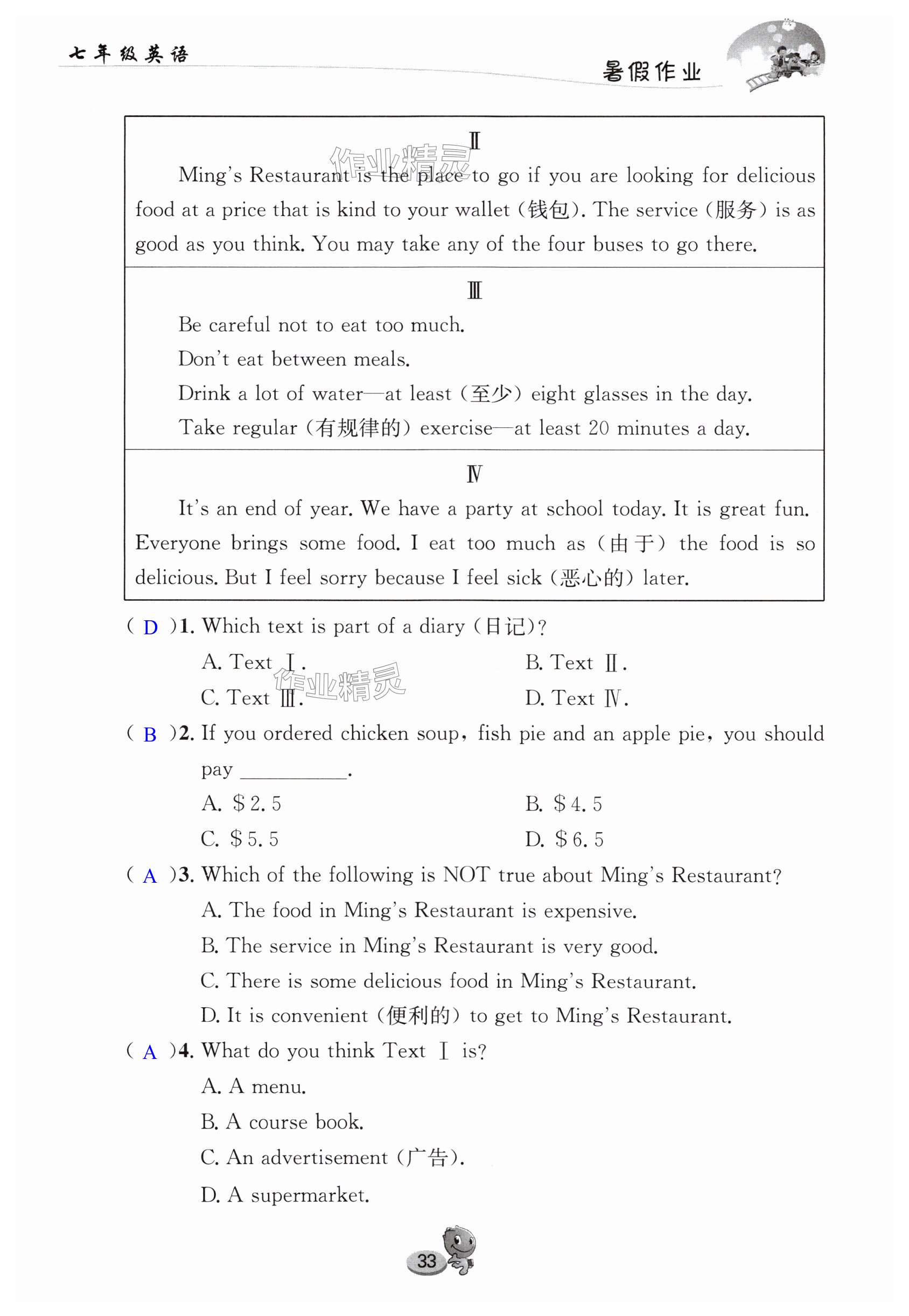注:目前有些书本章节名称可能整理的还不是很完善,但都是按照顺序排列的,请同学们按照顺序仔细查找。练习册 2025年暑假作业长江出版社七年级英语人教版 答案主要是用来给同学们做完题方便对答案用的,请勿直接抄袭。