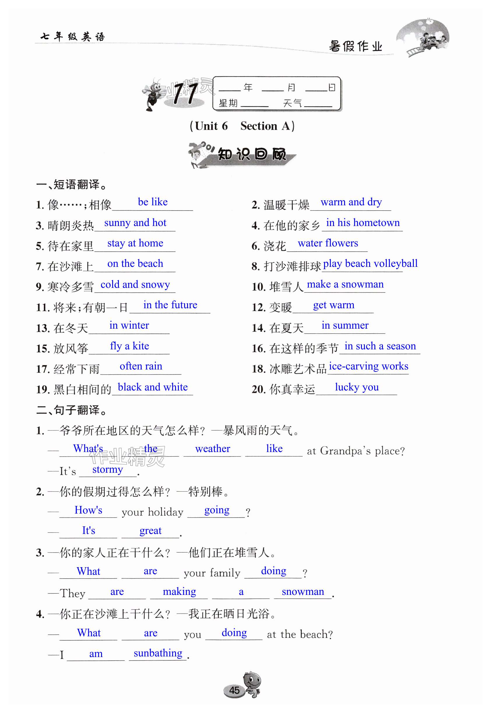 注:目前有些书本章节名称可能整理的还不是很完善,但都是按照顺序排列的,请同学们按照顺序仔细查找。练习册 2025年暑假作业长江出版社七年级英语人教版 答案主要是用来给同学们做完题方便对答案用的,请勿直接抄袭。
