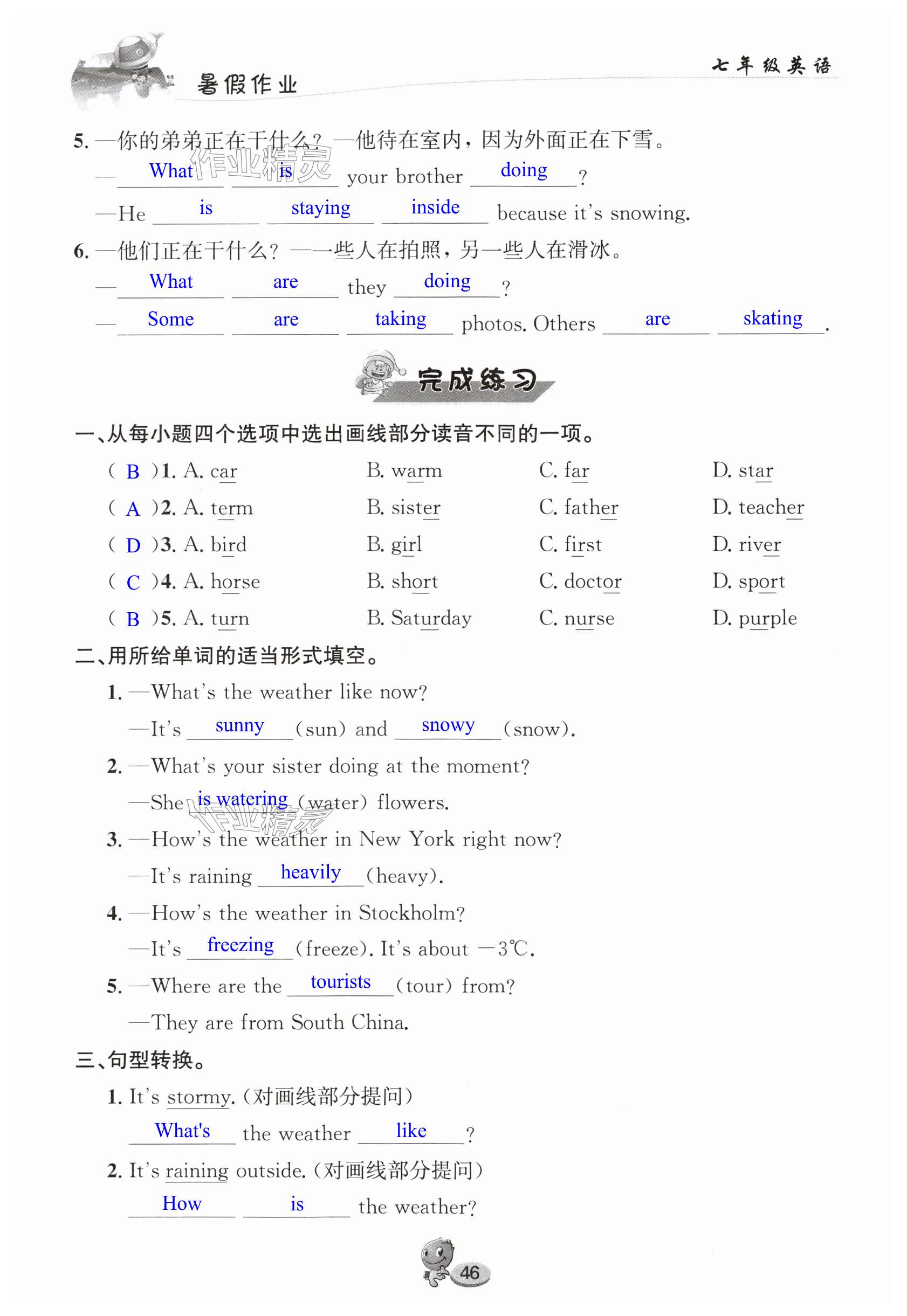 注:目前有些书本章节名称可能整理的还不是很完善,但都是按照顺序排列的,请同学们按照顺序仔细查找。练习册 2025年暑假作业长江出版社七年级英语人教版 答案主要是用来给同学们做完题方便对答案用的,请勿直接抄袭。