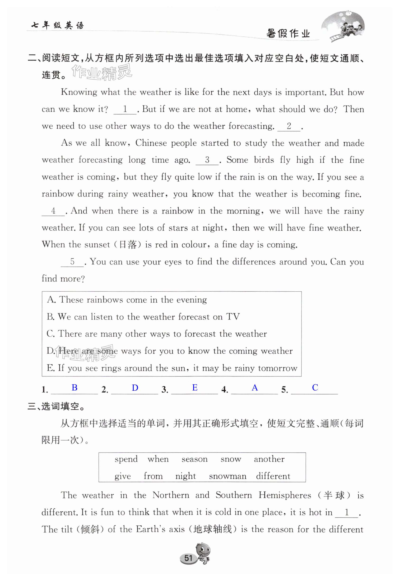 注:目前有些书本章节名称可能整理的还不是很完善,但都是按照顺序排列的,请同学们按照顺序仔细查找。练习册 2025年暑假作业长江出版社七年级英语人教版 答案主要是用来给同学们做完题方便对答案用的,请勿直接抄袭。