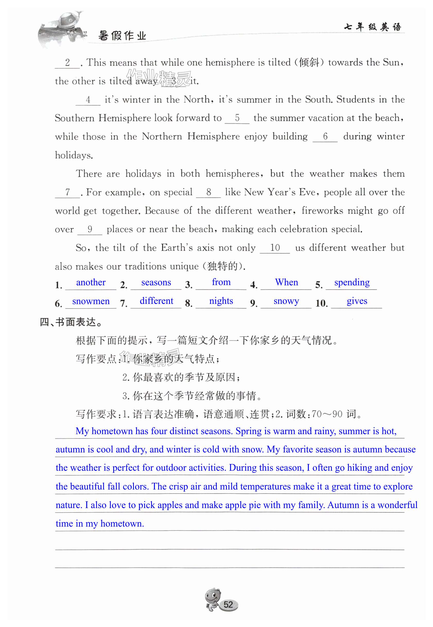注:目前有些书本章节名称可能整理的还不是很完善,但都是按照顺序排列的,请同学们按照顺序仔细查找。练习册 2025年暑假作业长江出版社七年级英语人教版 答案主要是用来给同学们做完题方便对答案用的,请勿直接抄袭。