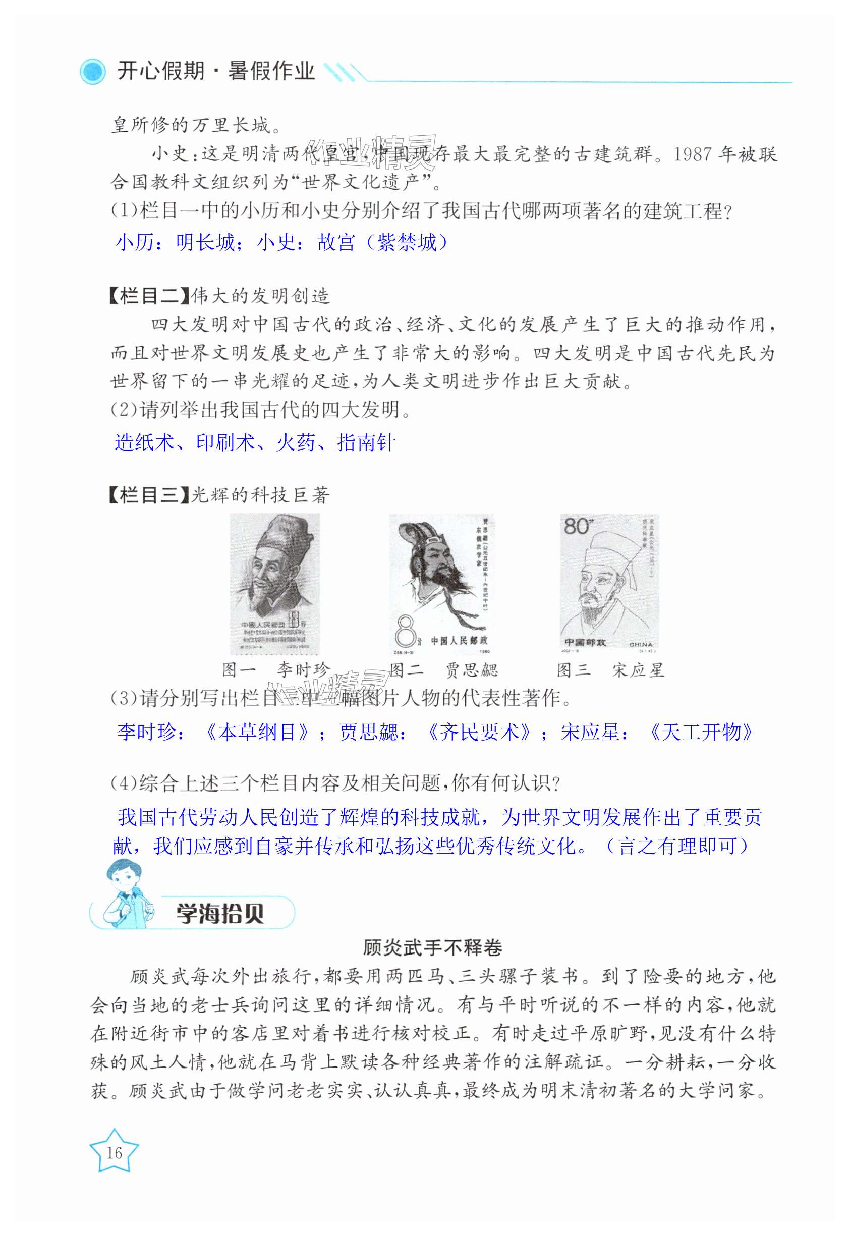 注:目前有些书本章节名称可能整理的还不是很完善,但都是按照顺序排列的,请同学们按照顺序仔细查找。练习册 2025年开心假期暑假作业七年级历史武汉出版社 答案主要是用来给同学们做完题方便对答案用的,请勿直接抄袭。
