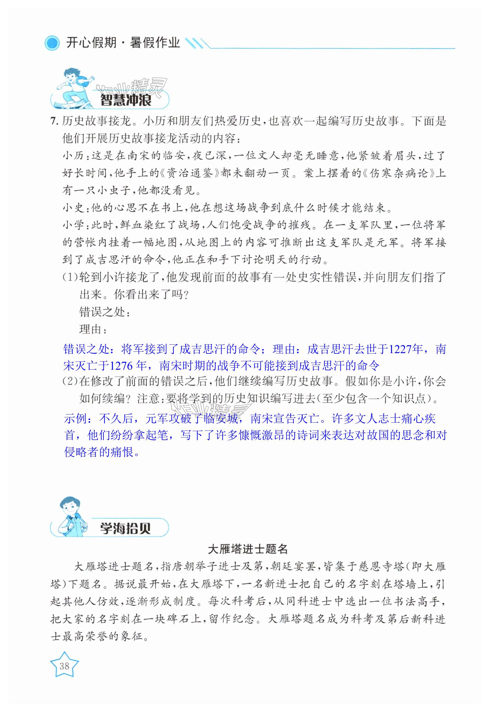 注:目前有些书本章节名称可能整理的还不是很完善,但都是按照顺序排列的,请同学们按照顺序仔细查找。练习册 2025年开心假期暑假作业七年级历史武汉出版社 答案主要是用来给同学们做完题方便对答案用的,请勿直接抄袭。