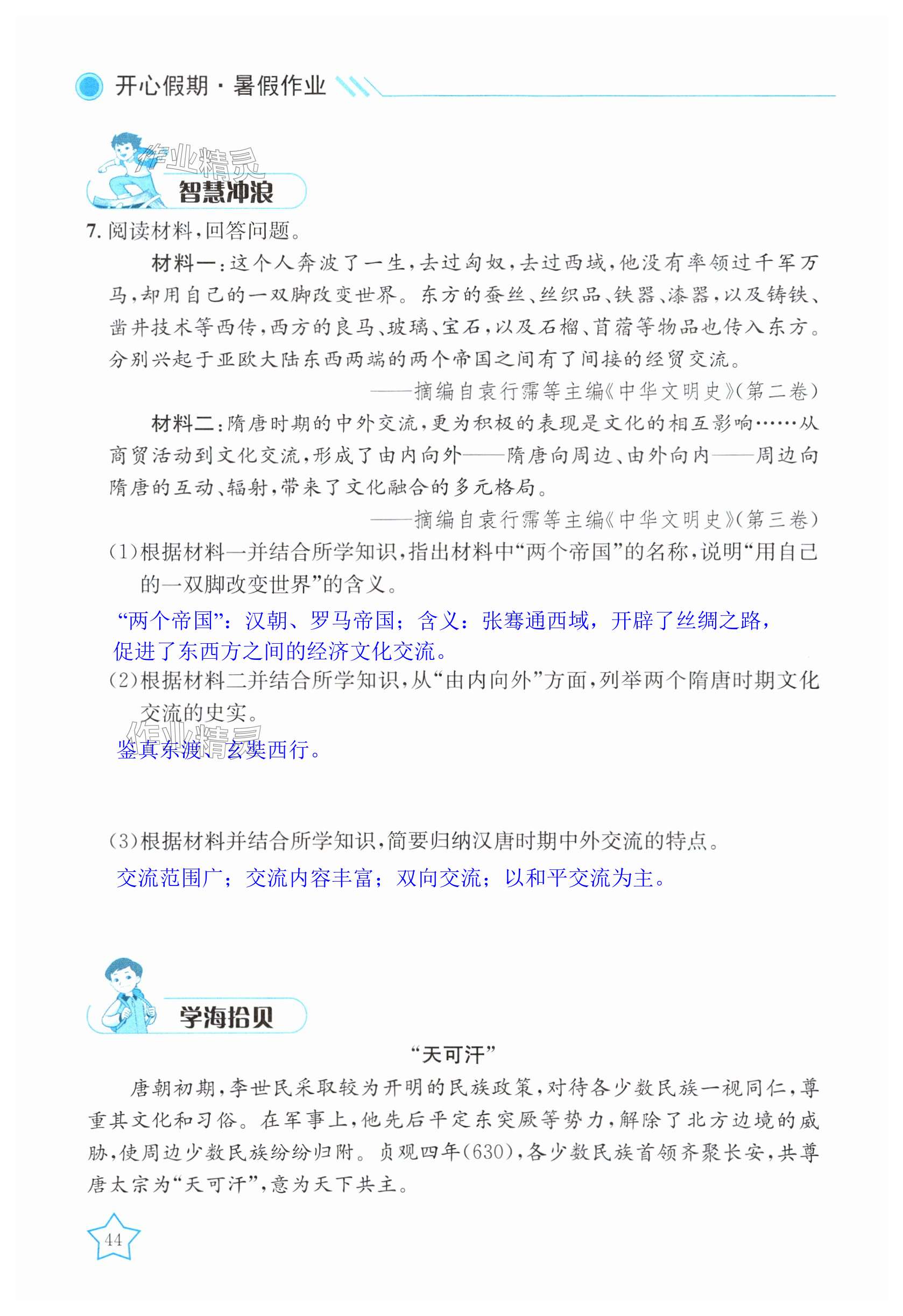 注:目前有些书本章节名称可能整理的还不是很完善,但都是按照顺序排列的,请同学们按照顺序仔细查找。练习册 2025年开心假期暑假作业七年级历史武汉出版社 答案主要是用来给同学们做完题方便对答案用的,请勿直接抄袭。