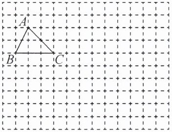 6. 如图,$\triangle ABC的三个顶点都在每格为1$个单位长度的格点上,请将$\triangle ABC先向下平移3$个单位长度,再向右平移$4个单位长度后得到\triangle A_{1}B_{1}C_{1}$.