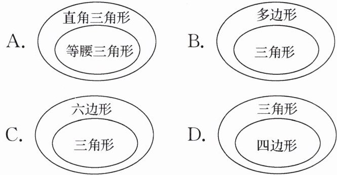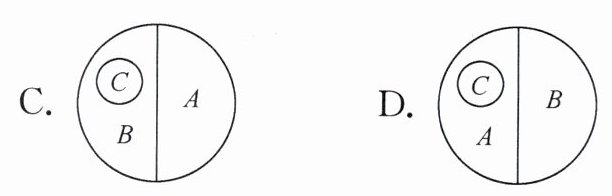 5. 用A表示分数,B表示整数,C表示负分数,则下列四个示意图中,能正确表示三个概念之间关系的是(