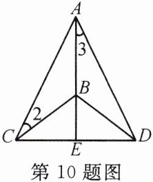 10. 如图,已知$AC = AD$,$CB = DB$,$\angle 2= 30^{\circ}$,$\angle 3= 26^{\circ}$,则$\angle CBE= $______