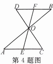 4. 如图,$AB$、$CD$、$EF相交于点O$,且被点$O$平分,$DF = CE$,$BF = AE$,则图中全等三角形共有(
