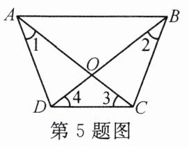 5. 如图,$\angle 1= \angle 2$,$\angle 3= \angle 4$,下面结论错误的是(