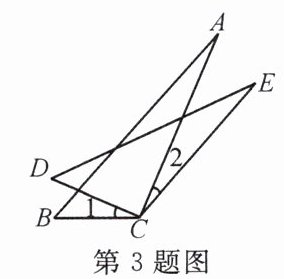 3. 如图,由$\angle 1= \angle 2$,$BC = DC$,$AC = EC$,得$\triangle ABC\cong\triangle EDC$的根据是(