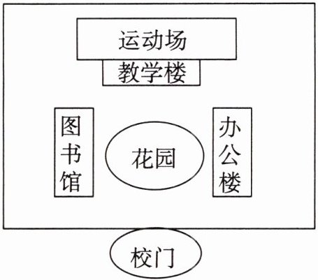 The school gate is in the front of the school. There is a garden in the middle of the school. Some beautiful flowers are in it. The teachers' building is on the right of the garden and across from the teachers' building is a library. I often do some reading in it. The classroom building is behind the garden. My classroom is on the third floor. There's a large sports field behind the classroom building. All the students go there and do exercises together in the morning.
