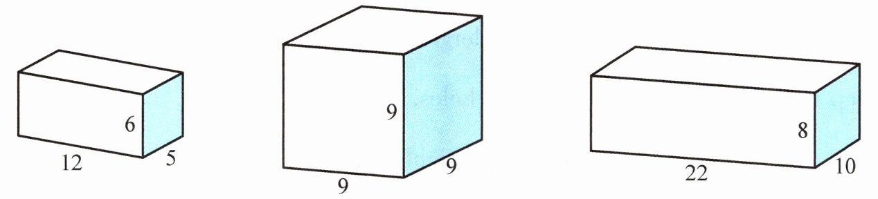 2. 求下面长方体、正方体的体积和表面积(单位:cm)。