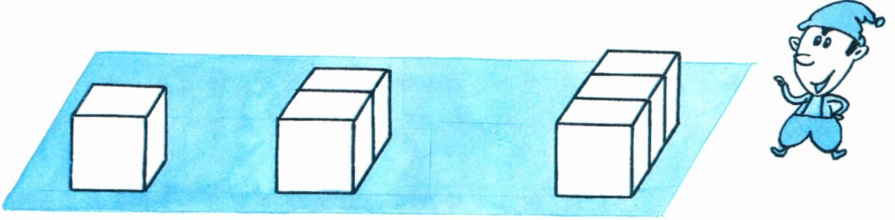 1个小正方体有5个面露在外面,2个小正方体有____个面露在外面,3个小正方体有____个面露在外面。