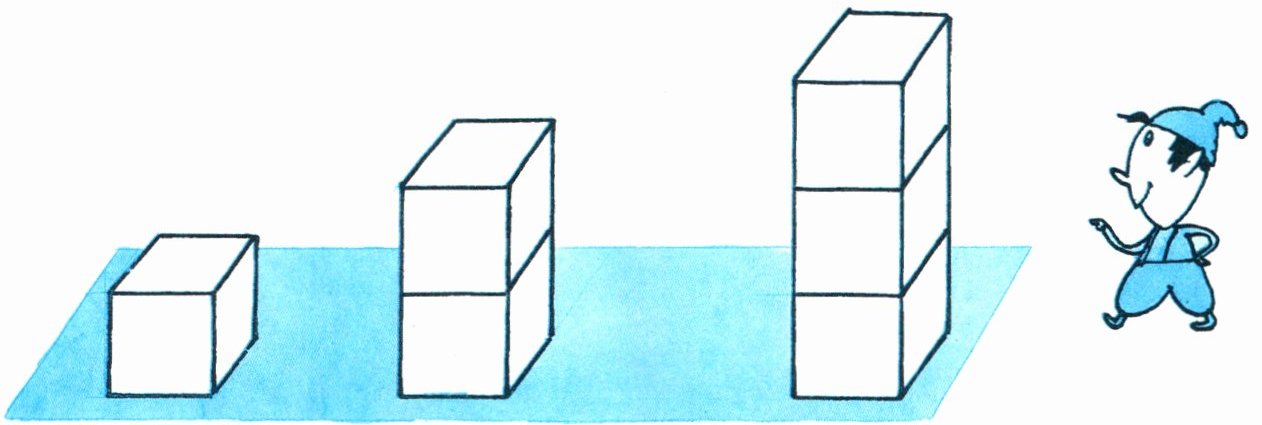 观察$1$个小正方体,有$5$个面露在外面,可写成$3\times1 + 2$。
