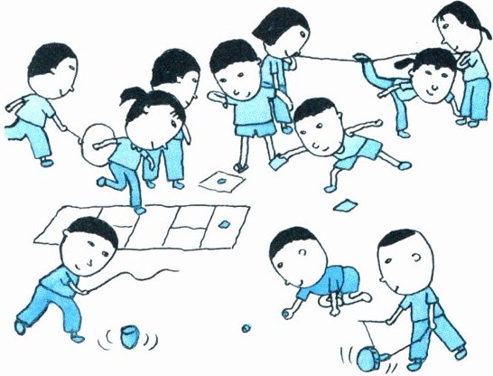我先向奶奶讨教了玩法。奶奶说:“用粉笔在地上画出一连串格子,一般是六个小格和两个大格。玩家站在起始线外,将一块小瓦片(或沙包等)丢进第一个格子,然后单脚跳进格子,按顺序把瓦片踢进后面的格子,中途不能踩线、出格,也不能让瓦片跳出格子。如果顺利完成,就可以在这个格子写上自己的名字,算‘占领’了。最后看谁占领的格子多谁就赢。”
