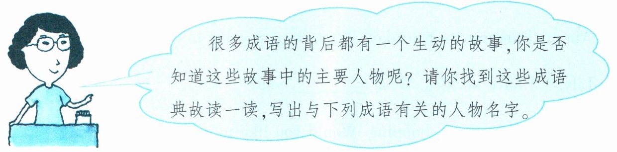 很多成语的背后都有一个生动的故事,你是否知道这些故事中的主要人物呢?请你找到这些成语典故读一读,写出与下列成语有关的人物名字。