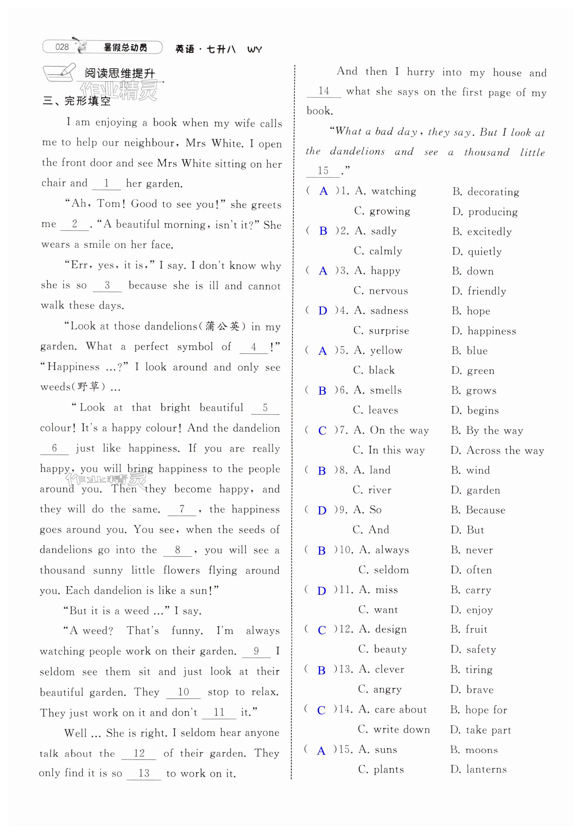 注:目前有些书本章节名称可能整理的还不是很完善,但都是按照顺序排列的,请同学们按照顺序仔细查找。练习册 2025年暑假总动员宁夏人民教育出版社七年级英语外研版 答案主要是用来给同学们做完题方便对答案用的,请勿直接抄袭。