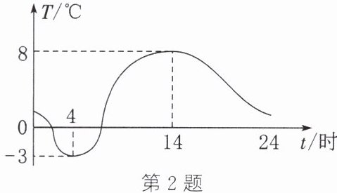 2. 如图所示为自动测温仪记录的图象,它反映了某市的春季某天气温T随时间t的变化而变化.下列从图象中得到的信息正确的是( )