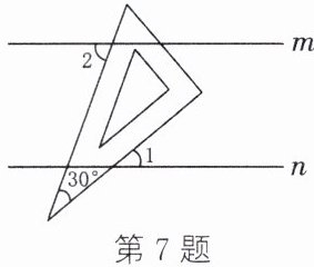 7.(巴中中考)如图,直线$m// n$,一块含有$30°$角的直角三角尺按图中的方式放置. 若$∠1 = 40°$,则$∠2$的度数为( )
