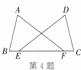 4.(凉山中考)如图,点E,F在BC上,$BE = CF$,$∠B = ∠C$,添加一个条件,不能证明$△ABF≌△DCE$的是( )