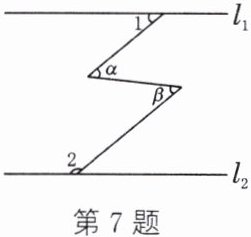 7. 如图,直线$l_{1}// l_{2}$,$\angle \alpha=\angle \beta$,$\angle 1= 40^{\circ}$,求$\angle 2$的度数.