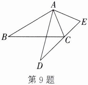 9. 如图,$AB= AD$,$∠BAD= ∠CAE$,$∠B= ∠D$,点C在DE上. 试说明:$BC= DE$.