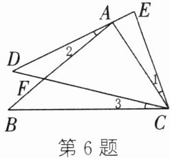 6. 如图,点 $ A $ 在 $ D E $ 上,点 $ F $ 在 $ A B $ 上,且 $ A C = C E $,$ \angle 1 = \angle 2 = \angle 3 $,则 $ D E $ 的长等于( )